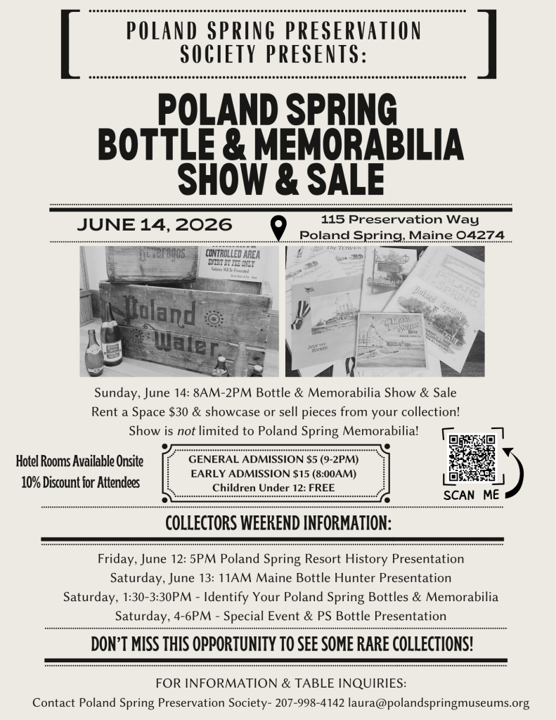 For more information please contact Laura at Poland Spring Preservation Society – Email: laura@polandspringmuseums.org or call 207-998-4142